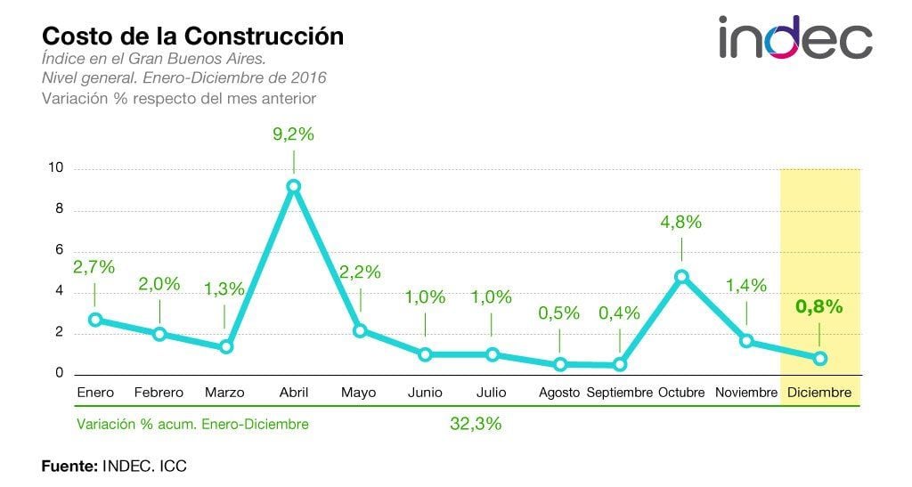 El costo de la construcción aumentó 32,2% durante el año