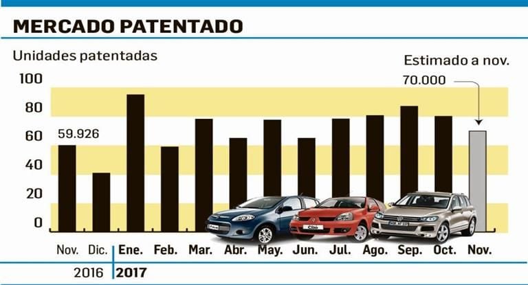 70.000 vehículos - que implicaría una suba del 17% contra noviembre de 2016 -