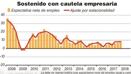 La ENE es el resultado de la resta entre el porcentaje de empleadores que prevé un aumento en sus contrataciones y el porcentaje que espera una disminución del empleo en su nómina para el próximo trimestre.