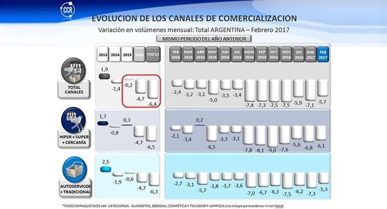 Así, según el relevamiento de CCR, el consumo acumuló 13 meses consecutivos en baja. En diciembre de 2015 fue la última vez que subió, aunque apenas un 0,5%. Con eso cerró además dos años consecutivos en caída.