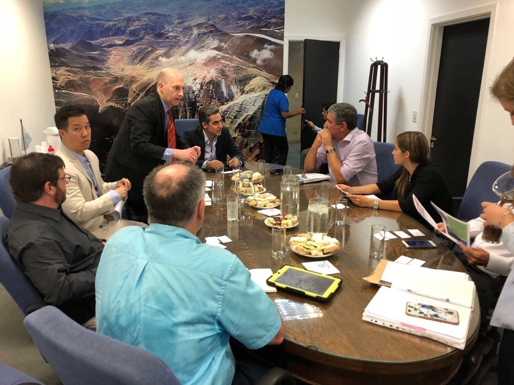 Este jueves, la subsecretaria de Minería de la provincia, Inés Ulla, participó de un reunión encabezada por el secretario de Minería de la Nación, Daniel Meilán y el subsecretario de Política Minera de la Secretaría de Minería de la Nación, Juan Biset, junto a destacados profesionales del Departamento de Estado del Gobierno de Estados Unidos en materia de aguas subterráneas, hidrogeología, con especial incidencia en el área Energética y desarrollos de la explotación de Litio: Paul Hueper, director de Programas Energéticas, Departamento de Estado; Mark Myers, asesor, ex-director del Servicio Geológico de EE.UU; Derek Wong, agregado Económico de la Embajada de EE.UU.