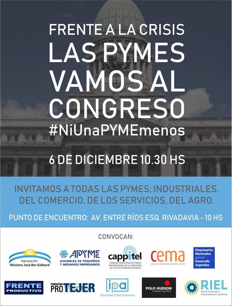 El sitio de la concentración será en la esquina de las avenidas Entre Ríos y Rivadavia, de la Ciudad Autónoma de Buenos Aires (CABA), en protesta por “el cierre de 10 empresas pymes por día” y ´”la pérdida de 107.000 puestos de trabajo, solo en el sector industrial”, desde 2015.