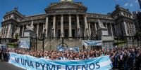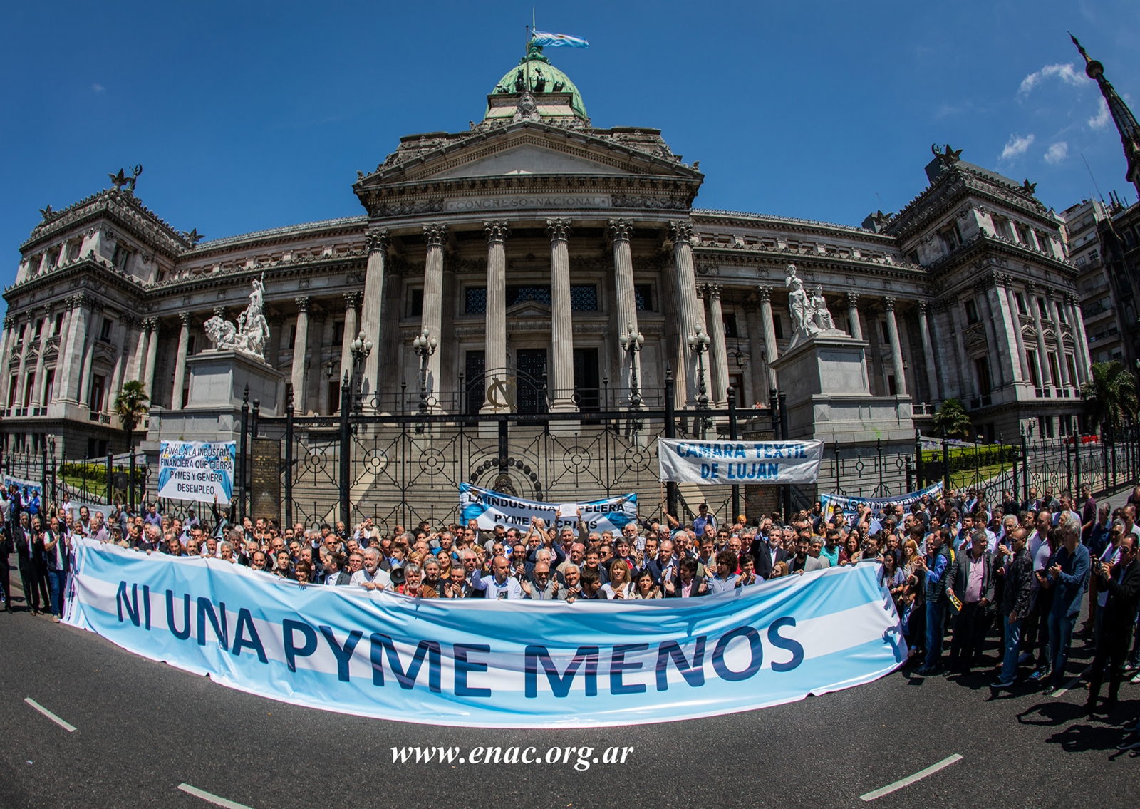 Unos de 300 empresarios se reunieron frente al Congreso de la Nación bajo la consigna “Ni una PyME menos”, para reclamar por serie de medidas de emergencia para el sector.