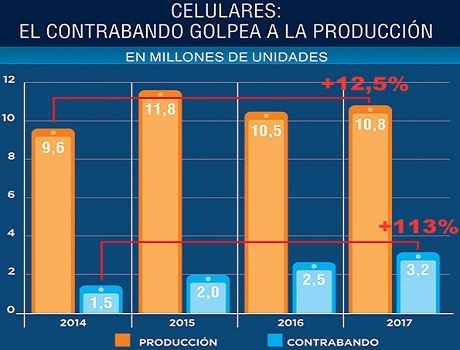 Según AFARTE, en 2017 entraron a la Argentina nada menos que 3,2 millones de celulares por el canal ilegal.