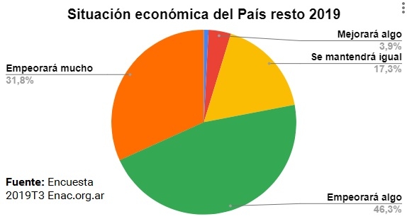 Al respecto de la expectativa sobre la situación económica para el país hasta fin del 2019 un 78% de los empresarios considera que empeorará mientras que un 17,3% se mantendrá igual y solo un 3,9% mejorará.