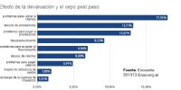 En este sentido la devaluación y las medidas que implementó el gobierno durante el mes de Agosto trajeron aparejados distorsiones en la dinámica empresarial como "problemas para cobrar a clientes" un 17,95%, "abuso de proveedores" un 13,21%, "problemas de pago y desabastecimiento" en un 21% entre otros provocando a las empresas pymes costos adicionales e innecesarios en un marco de recesión económica.