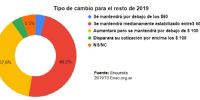Consultados sobre la estabilidad del precio del dólar en el corto plazo, 5 de cada 10 empresarios indicaron que el precio se mantendrán entre los $60 y $70 pesos por dólar, mientras que 4 de cada 10 empresarios considera que se ubicará arriba de los $70 hasta $100.