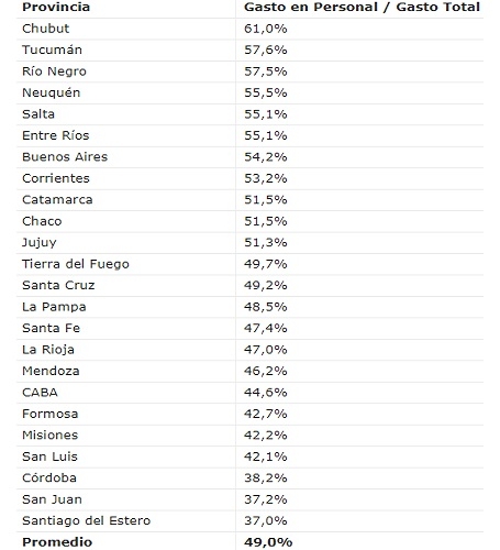 En la última década esta erogación promedió un 49,2% sobre el Gasto Total, es decir, que durante los últimos 10 años de cada peso que gastaron los estados provinciales casi la mitad fue destinado a su personal.