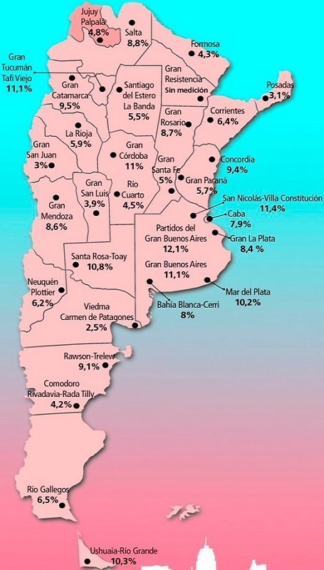 En los partidos del conurbano bonaerense se alcanzó el mayor índice de desempleo, con un registro del 12,1%, mientras el indicador más bajo fue el de Viedma-Carmen de Patagones, con un 2,5%.