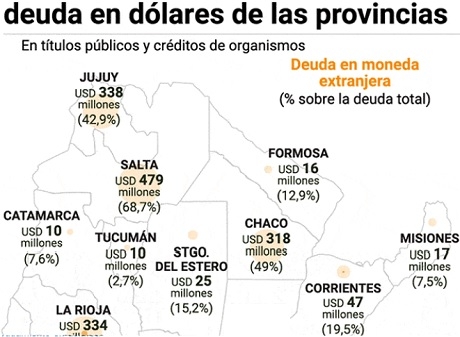 Las provincias protagonizan un capítulo aparte en cuanto a la deuda pública, pues desde la eliminación de los controles de cambio en diciembre de 2015 muchas de ellas, al igual que el Gobierno nacional, apelaron a la emisión de deuda en moneda extranjera para financiarse.