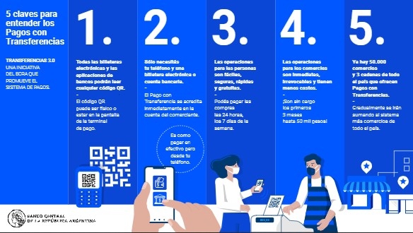 De esta forma, la meta del programa "Transferencias 3.0" es que, en el plazo de un año, cualquier comercio o empresa del país pueda cobrar por sus servicios con un código QR a cualquier persona y, a su vez, recibir el dinero en forma instantánea e irrevocable, lo que ayudará a competir con el uso de efectivo.