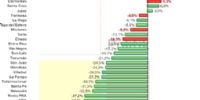 En el otro extremo, la Ciudad Autónoma de Buenos Aires mostró, por segundo mes consecutivo, la mayor caída interanual del país: -60,7%.