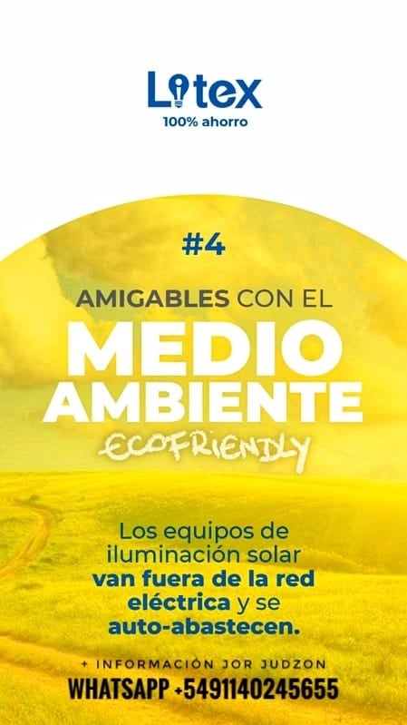 » Las luminarias solares LITEX iluminan durante años sin costo de energía.