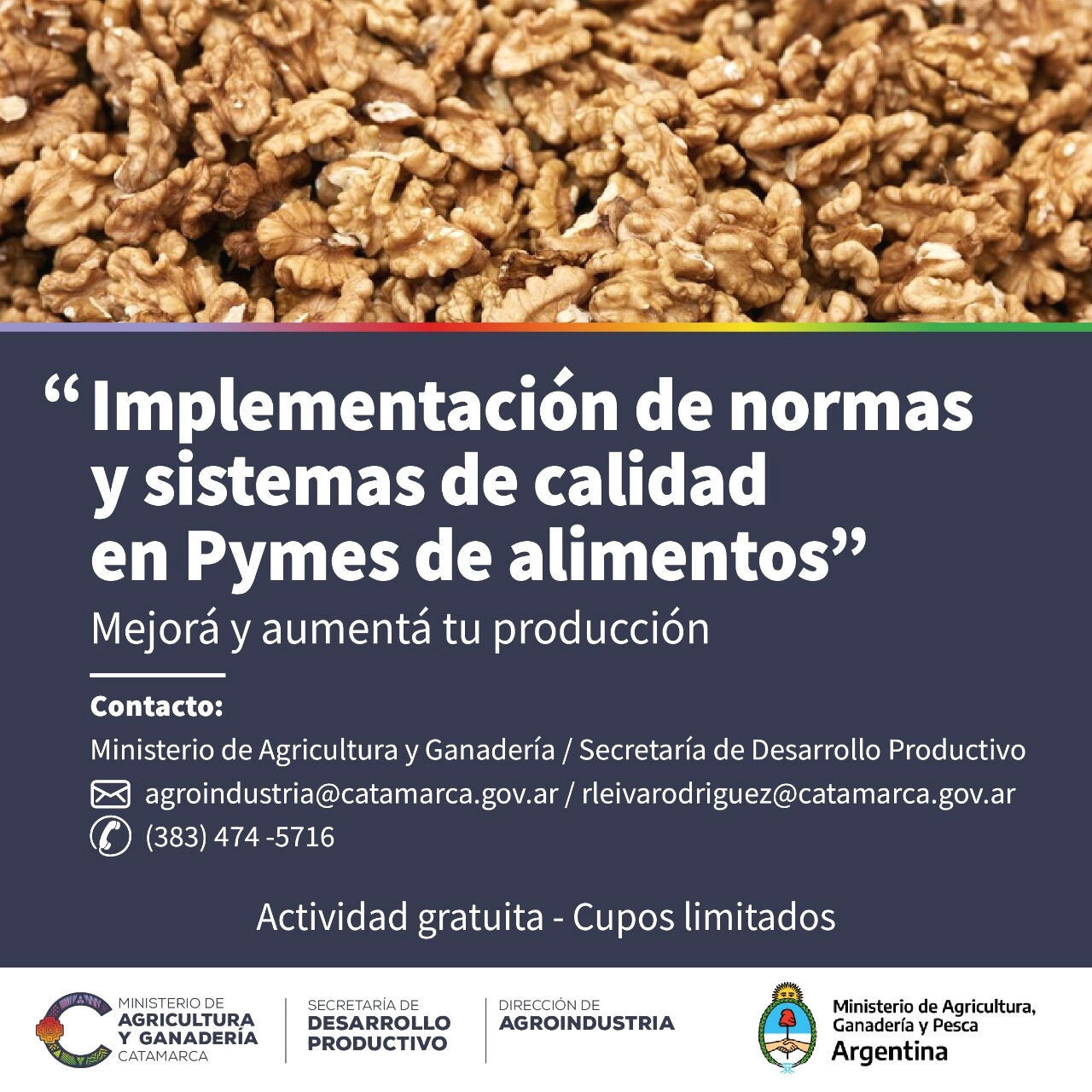 El Ministerio de Agricultura y Ganadería a través de la Secretaría de Desarrollo Productivo y la Secretaría de Alimentos, Bioeconomía y Desarrollo Regional del Ministerio de Agricultura, Ganadería y Pesca de la Nación convocan a empresas pymes del sector de alimentos y bebidas a participar del Proyecto: Implementación de Normas y Sistemas de Calidad en Pymes de Alimentos.