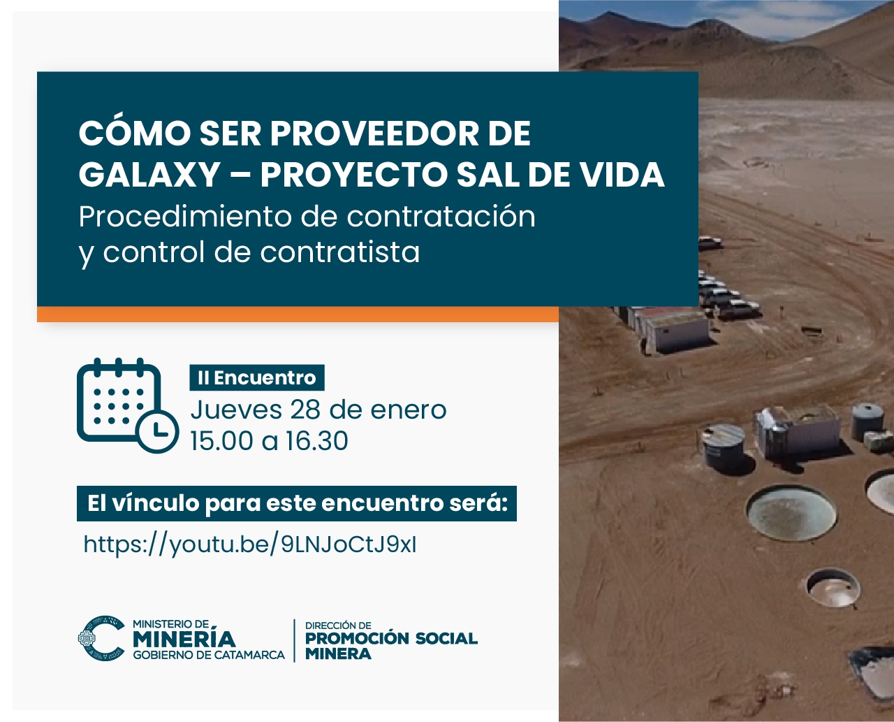 La iniciativa surgió de la Dirección de Promoción Social Minera ante la necesidad que los proveedores, especialmente locales, se interioricen de las modalidades de contratación, requerimientos, sistemas de control, procesos de compras, documentación, nuevas plataformas que se implementan a partir de la virtualidad.