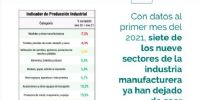 Además, a nivel sectorial, 10 de los 16 sectores que componen el IPI manufacturero se expandieron de manera interanual en enero de 2021. El sector que más creció fue el de Productos minerales no metálicos (31,5% interanual), seguido de maquinaria y equipo (31,2% interanual).