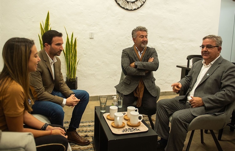 El gobernador Raúl Jalil junto al ministro de Industria, Comercio y Empleo, Lisandro Álvarez, recibieron esta mañana al CEO del grupo TN&Platex, Teddy Karagozian, quien les anunció una millonaria inversión en la planta de la empresa Coteca, ubicada en el parque industrial El Pantanillo, de propiedad del mencionado grupo empresarial.