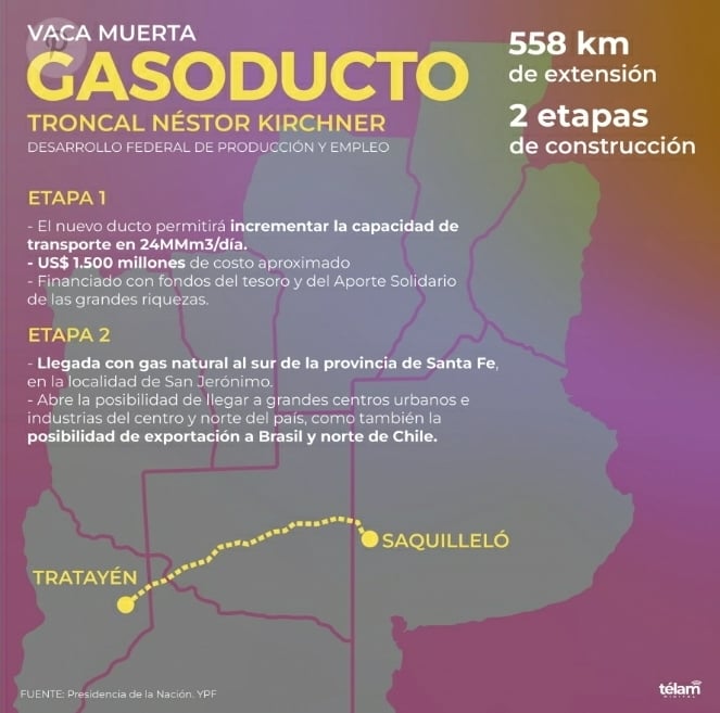 La obra conectará la zona de producción de hidrocarburos no convencionales de Vaca Muerta, en la localidad de Tratayén, en Neuquén, y permitirá ampliar un 25% la capacidad del sistema de transporte de gas natural y ayudará a desarrollar la producción creciente en Vaca Muerta.