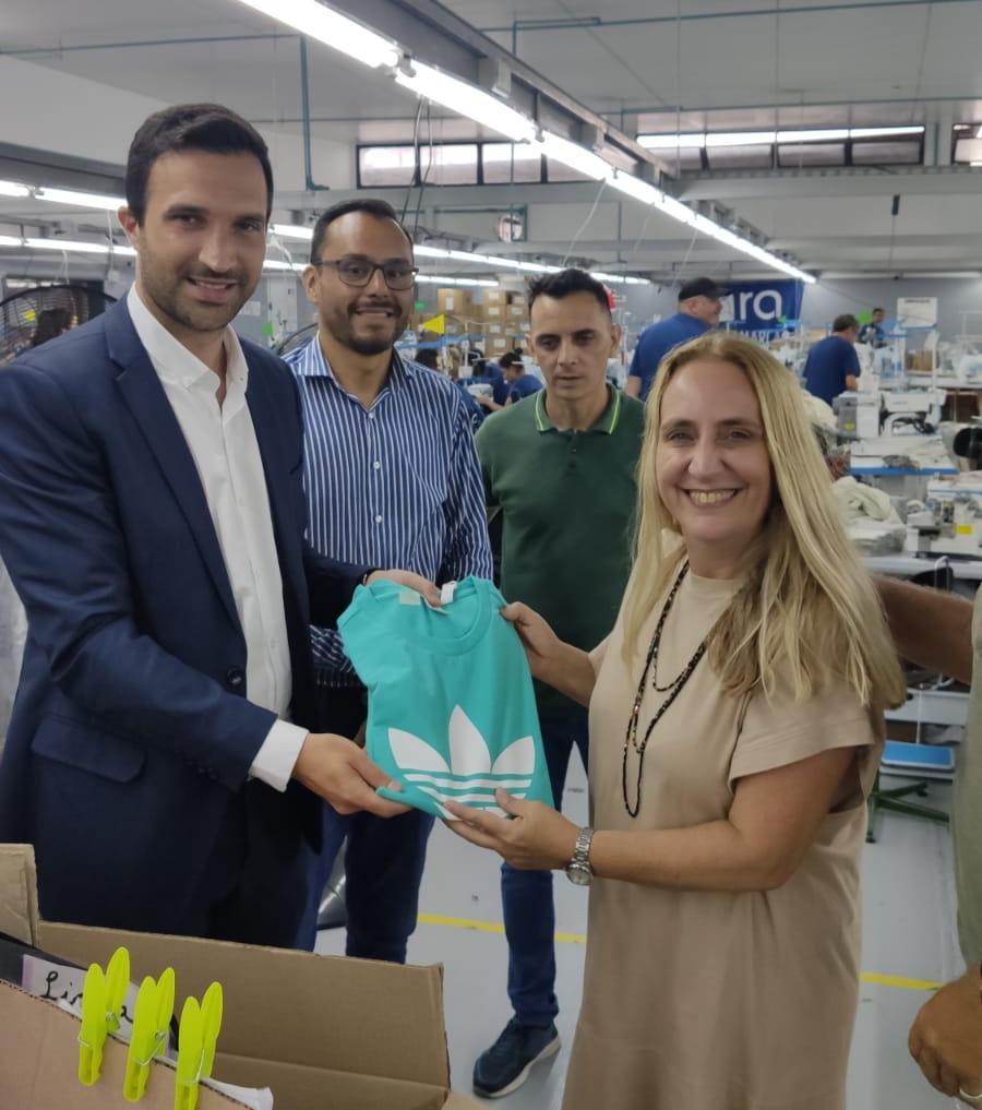 La presencia de los representantes Adidas, para quien RA Intertrading fabrica prendas deportivas, entre ellas la indumentaria de la selección de fútbol campeona del mundo, vinieron a Catamarca para auditar la planta y homologar la confección de más productos de sus líneas deportivas.