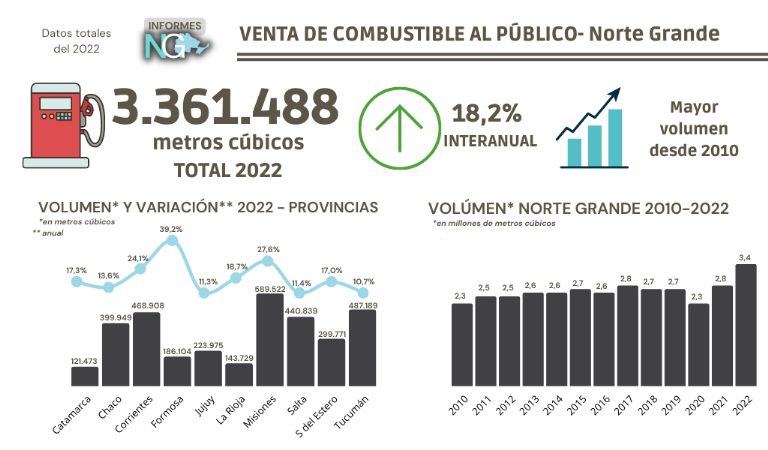 Si se comparan los resultados de 2022 contra el 2010, de modo tal de observar la variación punta a punta de la serie, las ventas crecieron 46% en el período en todo el Norte Grande, pero con un desempeño más destacado en el NEA: +51% vs. 41% del NOA.