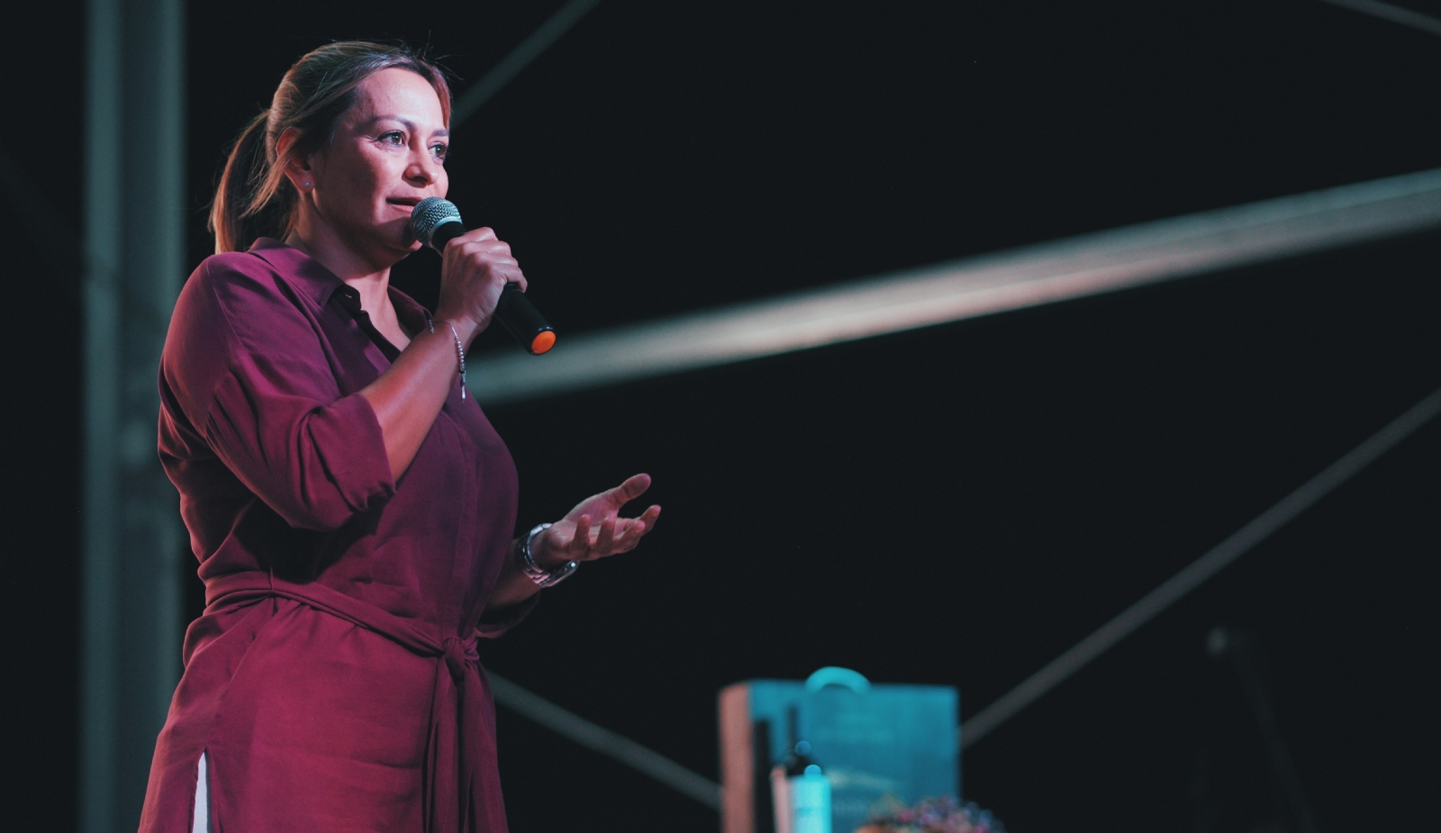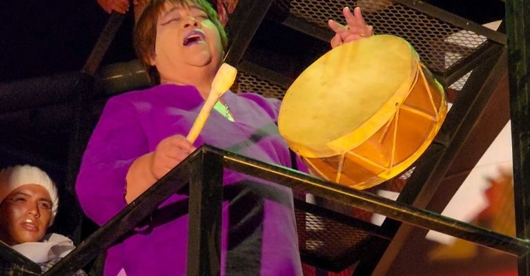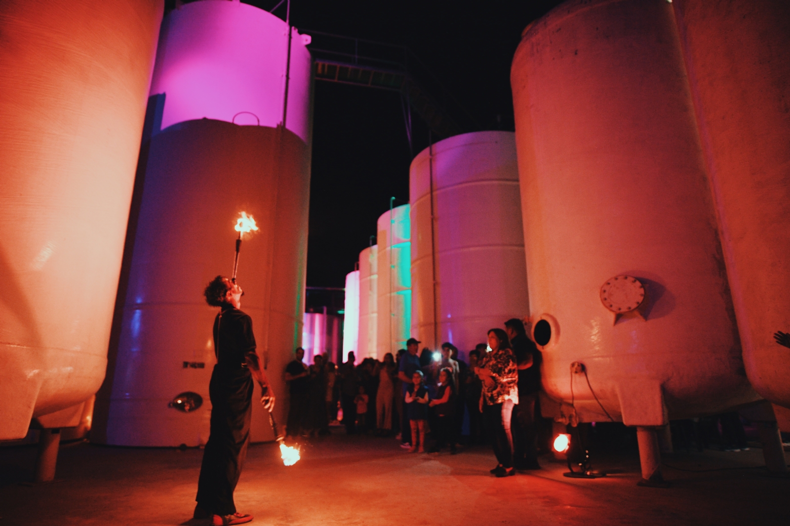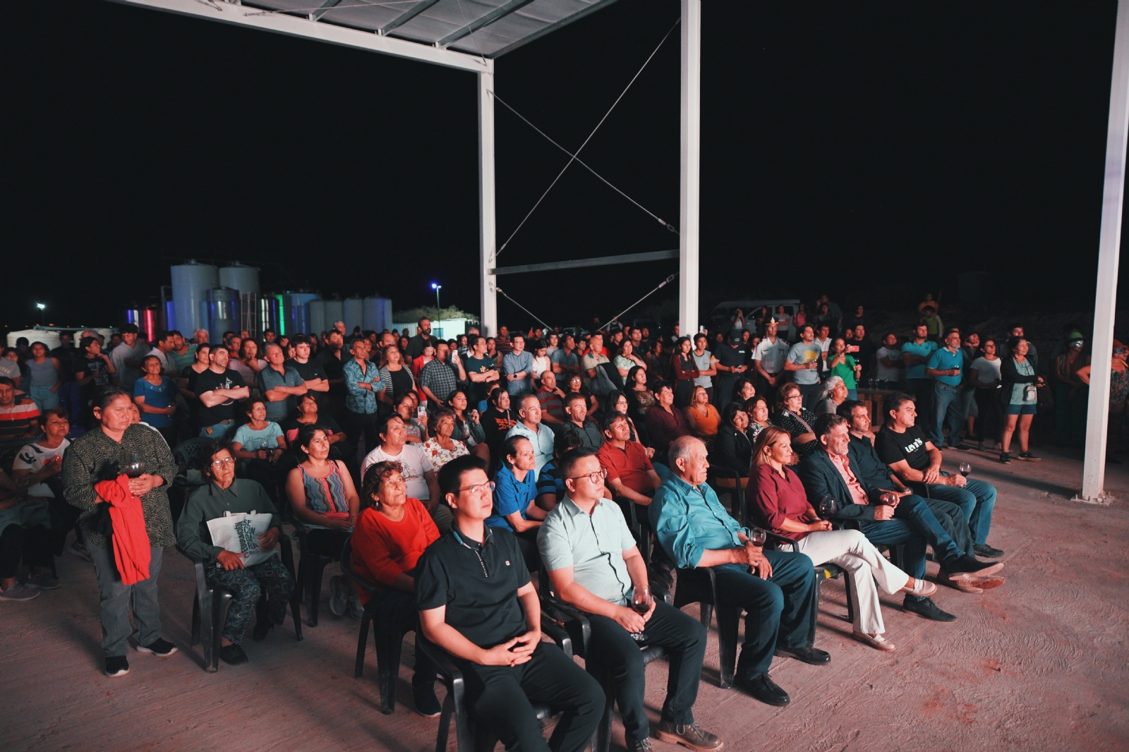 La presentación del vino contó con un espectáculo de iluminación de la Bodega, una performance con actores, bailarines y bagualas que tuvo como eje la esencia productora de Medanitos y las bondades del vino.