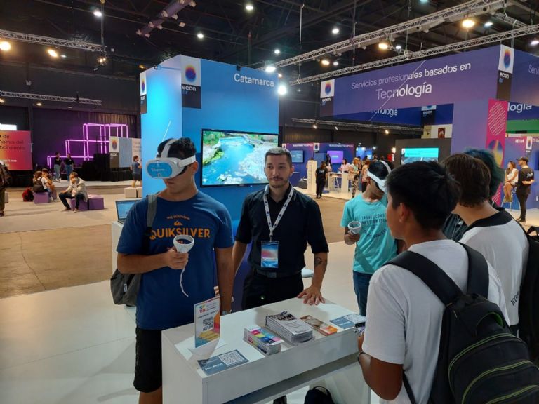 El stand es coordinado por el director del organismo provincial, José De María Recalde, junto a la titular de la Casa de Catamarca, Anina Moscone, y contó con una importante cantidad de visitantes, en un marco donde están presentes todas las provincias junto a más de 60 empresas de distintas áreas de la economía del conocimiento, como software, robótica, gaming y audiovisuales, entre otras.