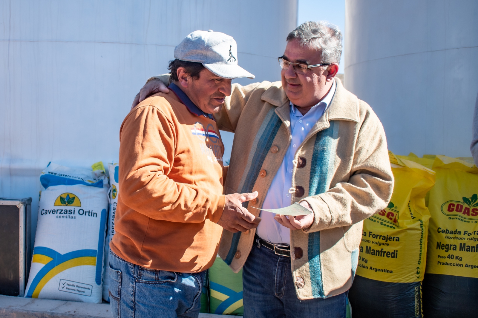 La entrega se efectuó en Bodega La Indómita y constó de un aporte de más de $2 millones de pesos para los productores afectados. Además, se entregaron 9 toneladas de maíz para conformar un fondo rotatorio en Fiambalá y más de 500 kilos de semillas alfa cebada para sembrar a productores tinogasteños.