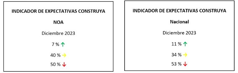 Por su parte, el Indicador de Expectativas Construya (IEC) que mide la opinión de los encuestados de cómo evolucionó su actividad en los últimos doce meses es mayormente negativo a nivel país. En el NOA, el 50% de los que respondieron la encuesta registraron un descenso de actividad, 40% la mantuvo y 7% la aumentó. En tanto los datos nacionales muestran que 53% del total disminuyó su actividad; un 34% sostiene que se mantuvo el mismo nivel y el 11% cree que su actividad se incrementará de cara al futuro.