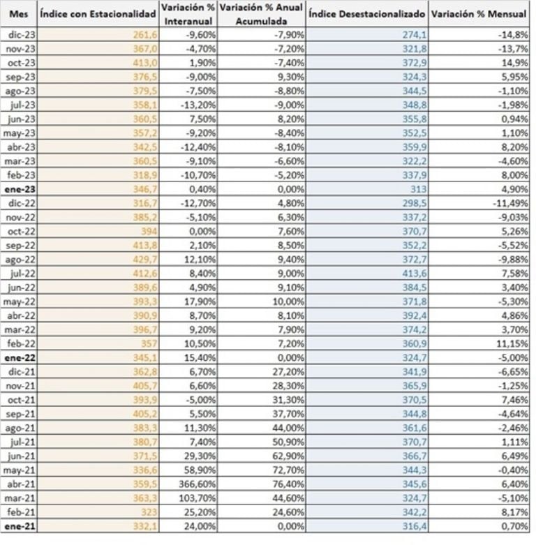 Es conveniente aclarar que el ISAC que se publicará estará referido al mes de noviembre de 2023, por lo tanto, no es comparable con este Índice Construya, correspondiente al mes de diciembre.
