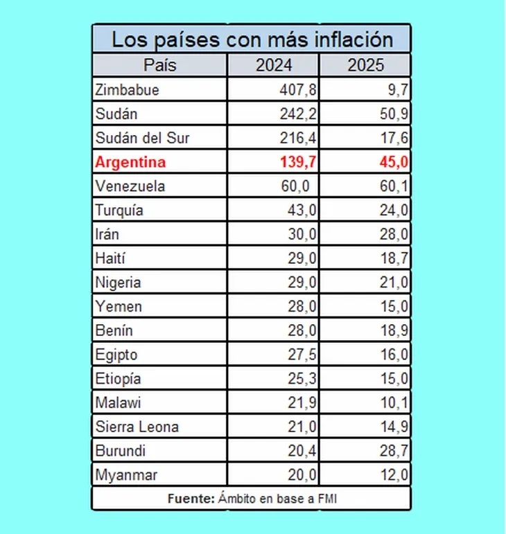 También proyecta que la inflación baje de 139,7% este año a 45% el próximo. Así surge del informe Perspectivas de la Economía Mundial (World Economic Outlook, WEO) dado a conocer este martes en Washington.