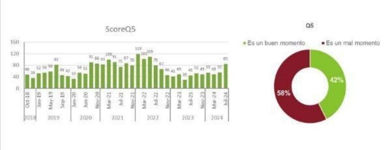 El mayor descenso se registra en el Índice de Expectativas Futuras (150 vs 161) representando un 6% menos, dado que la caída del Índice de Situación Presente sólo es del 1% (105 vs 106).
