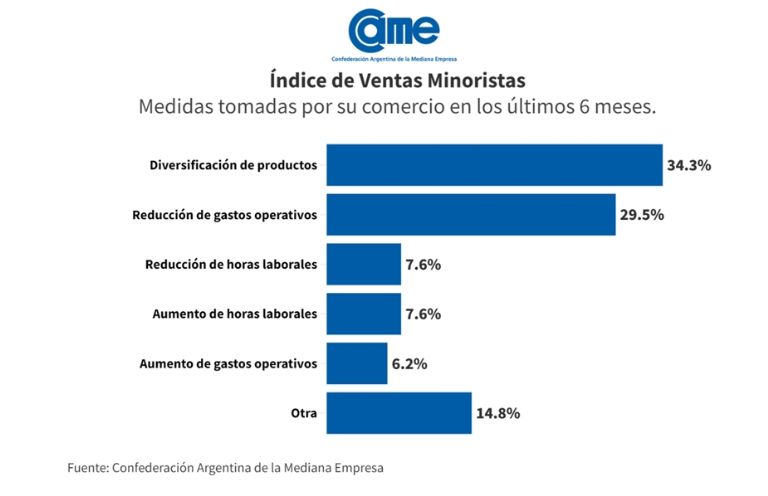 Para paliar la coyuntura actual, el 34,3% de las empresas consultadas incorporó nuevos productos y otro 29,5% redujo sus costos operativos.