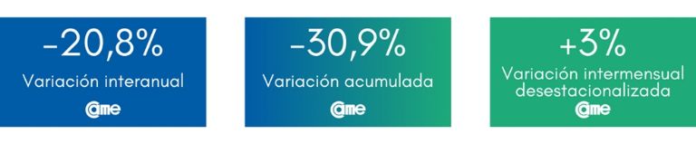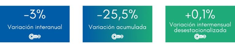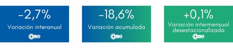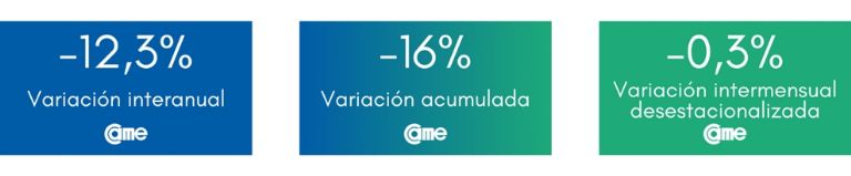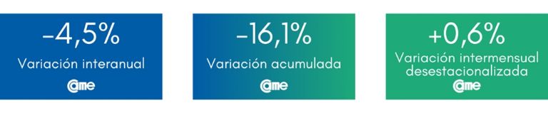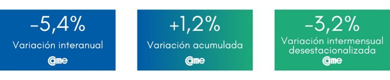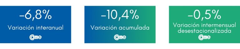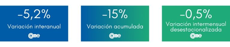 En tanto, en la comparación mensual desestacionalizada retrocedieron 0,5%; merma menor a la del mes anterior (1,6%). Asimismo, se confirma una baja por tercer mes consecutivo, en los porcentajes de caída: del 21,9% de retroceso de junio, al 17,7% en julio, 10,5% en agosto, hasta el actual 5,2% en septiembre.