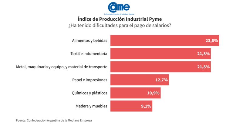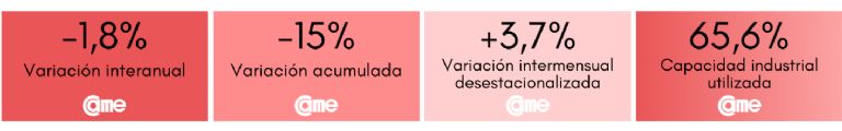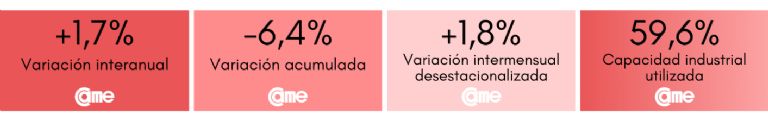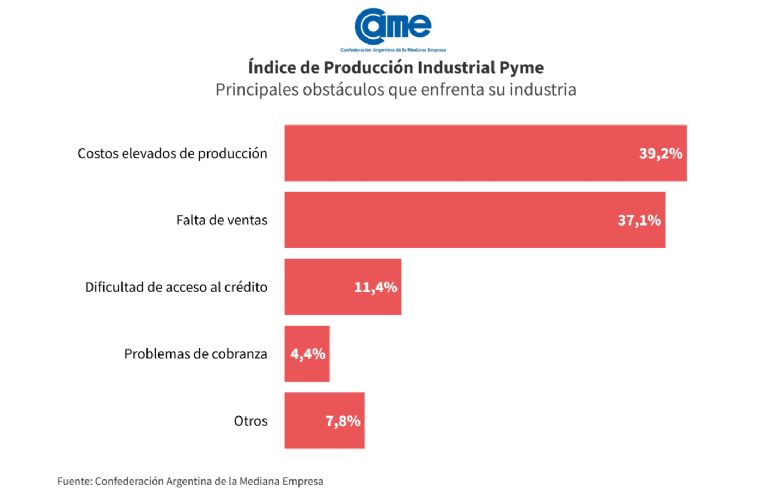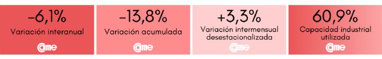 Los resultados surgen del Índice de Producción Industrial Pyme (IPIP) que elabora CAME, con una muestra que alcanzó a 420 industrias pyme a nivel federal.