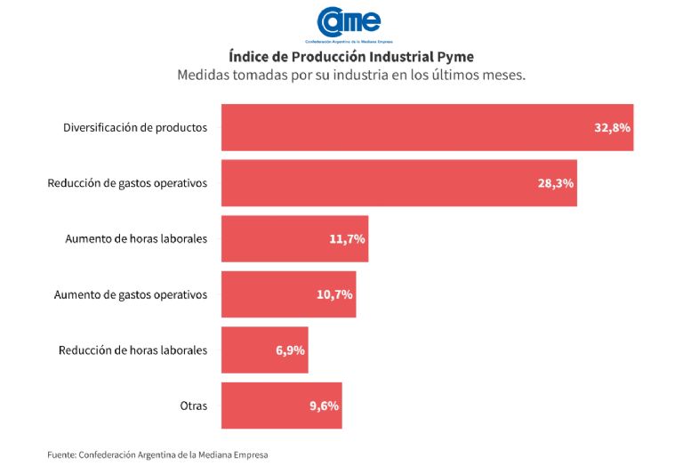 Los niveles de actividad bajos en los que operan las pymes obligaron a muchas a tomar medidas para apaciguar el impacto. Así, el 32,8% está diversificando su producción, incorporando nuevos productos y la prestación de servicios adicionales a su actividad habitual.