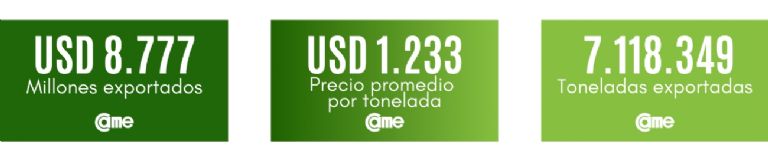 Complejo algodonero: el segundo complejo con mayor crecimiento fue el algodonero, alcanzando los USD 198,4 millones y un aumento del 159,2%. Los principales destinos de este complejo fueron Pakistán (USD 75,3 millones), Vietnam (USD 51,3 millones) y China (USD 24,1 millones), concentrando el 75,9% de las operaciones.