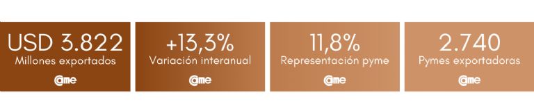 Así surge del Monitor de Exportación Pyme (MEP), un indicador elaborado por el sector de Estadísticas e Informes de la Confederación Argentina de la Mediana Empresa (CAME), para medir las exportaciones de las pequeñas y medianas empresas de la República Argentina. La medición es en base al monitoreo mensual de las operaciones de las empresas argentinas en el comercio exterior, discriminando por su condición pyme declarada ante la Secretaría de la Pequeña y Mediana Empresa, Emprendedores y Economía del Conocimiento, dependiente del Ministerio de Economía de la Nación.