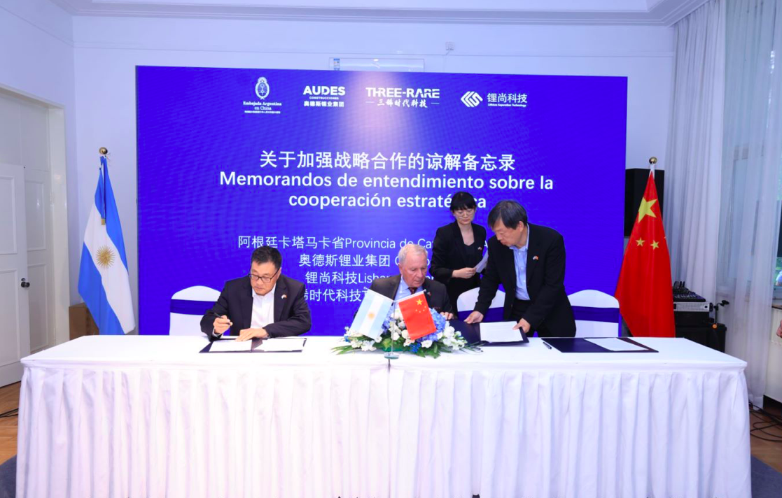 En dicho marco, la misión local llevó adelante la firma de un memorándum de entendimiento entre Catamarca y las Empresas en consorcio Lishang New Energy Technology; Sichuan Three-Rare Times Technology y Grupo Audes, para el desarrollo de la industria minera, la investigación y la formación en tecnología Industrial en la provincia.