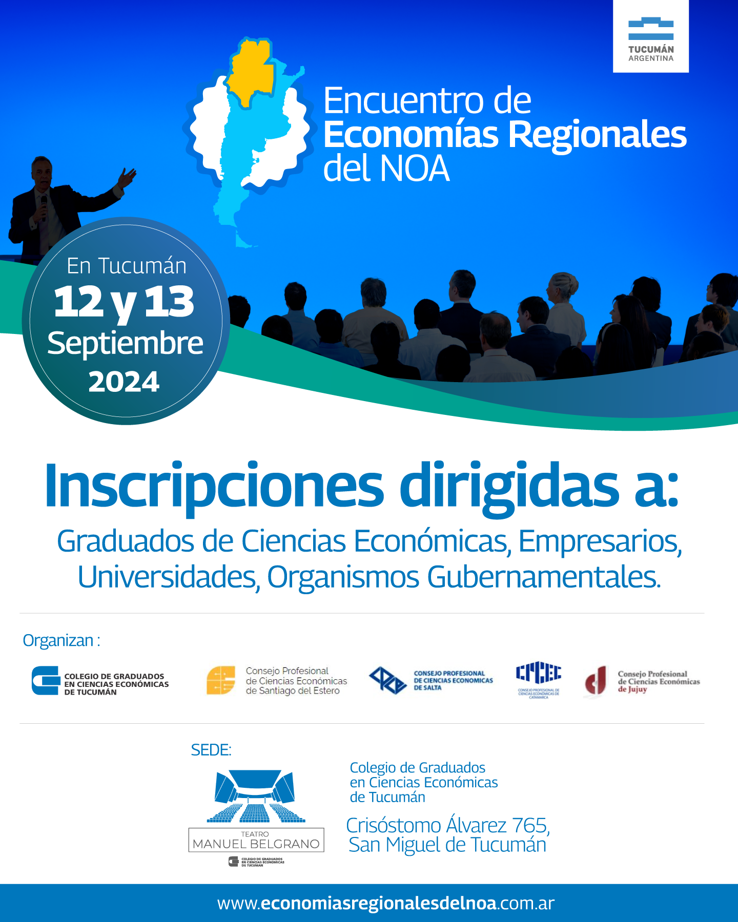 El Encuentro está dirigido a graduados en Ciencias Económicas, empresarios, universidades y organismos gubernamentales. Las inscripciones, que serán sin costo para los asistentes, deben registrarse en el sitio economiasregionalesdelnoa.com.ar .