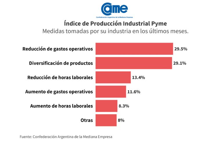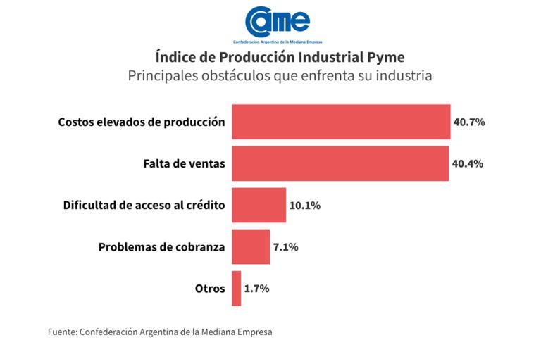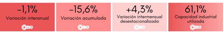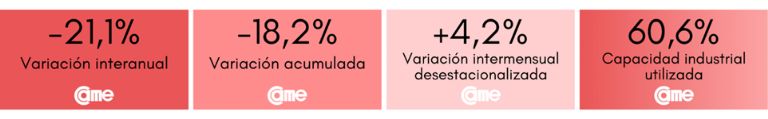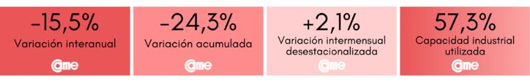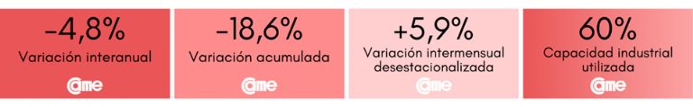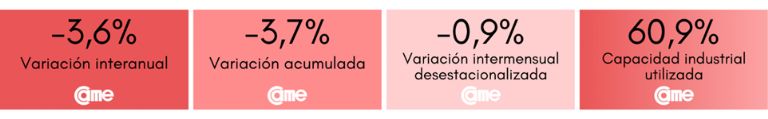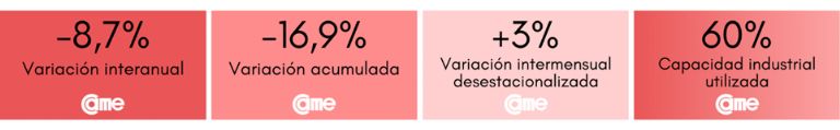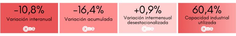 Todos estos resultados surgen del Índice de Producción Industrial Pyme (IPIP) que elabora CAME, con una muestra que alcanzó a 414 industrias pyme a nivel federal.