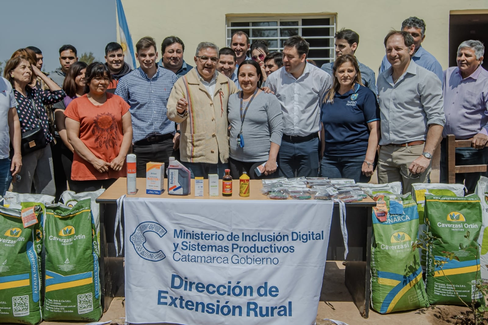 Además, el Ministerio de Inclusión Digital y Sistemas Productivos, a cargo del ministro Juan Cruz Miranda, entregó insumos a los productores de la zona. Entre los aportes se destacaron cinco toneladas de fertilizantes entregadas a los productores tabacaleros como parte del Plan Tabaco, junto con semillas de cabuto, forraje de sorgo y kits sanitarios para productores ganaderos de Los Altos, Santa Rosa, El Alto y Tapso.