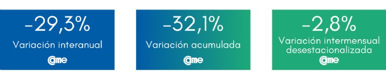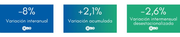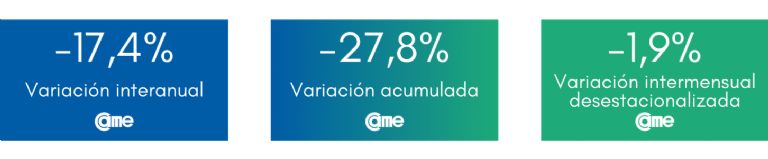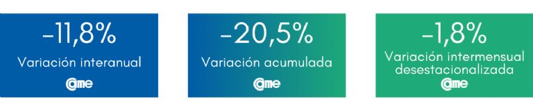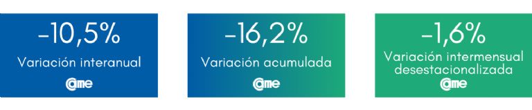 En el análisis por rubro, los siete sectores evaluados tuvieron disminuciones en comparación con el mismo período del año anterior.