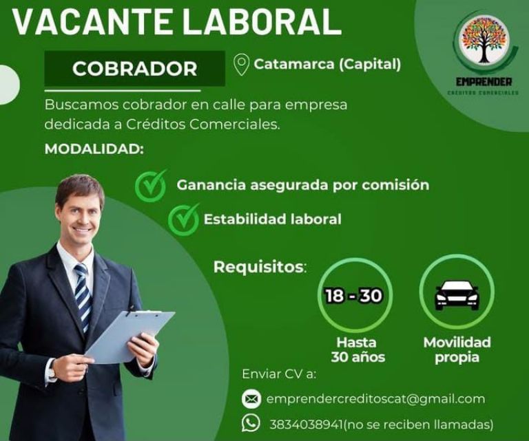 Empresa dedicada a Créditos Comerciales busca cobrador en calle.
