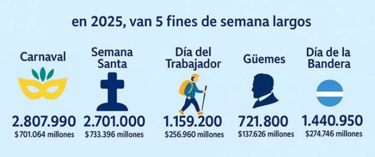 - El impacto de estos feriados fue significativo no sólo por la cantidad de personas movilizadas, sino también por su efecto dinamizador sobre las economías regionales. Los turistas se benefician de millas de pequeñas y medianas empresas vinculadas directa o indirectamente con la actividad turística.
