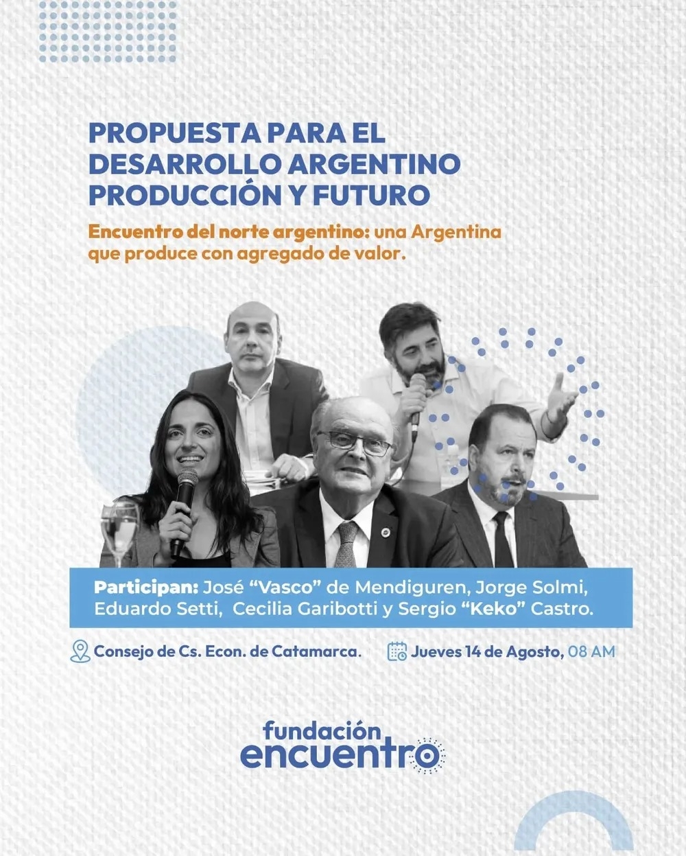 El evento, organizado por la Fundación Encuentro, se desarrollará a partir de las 8:00 en el Consejo de Ciencias Económicas de Catamarca (República 754, San Fernando del Valle de Catamarca) y será gratuito, aunque requiere inscripción previa a través de este formulario: https://docs.google.com/forms/d/e/1FAIpQLScYuMQ3jfytyvQWTFQ1eRyfYH-8bI5PD1iWzHdGGjWLknql5w/viewform