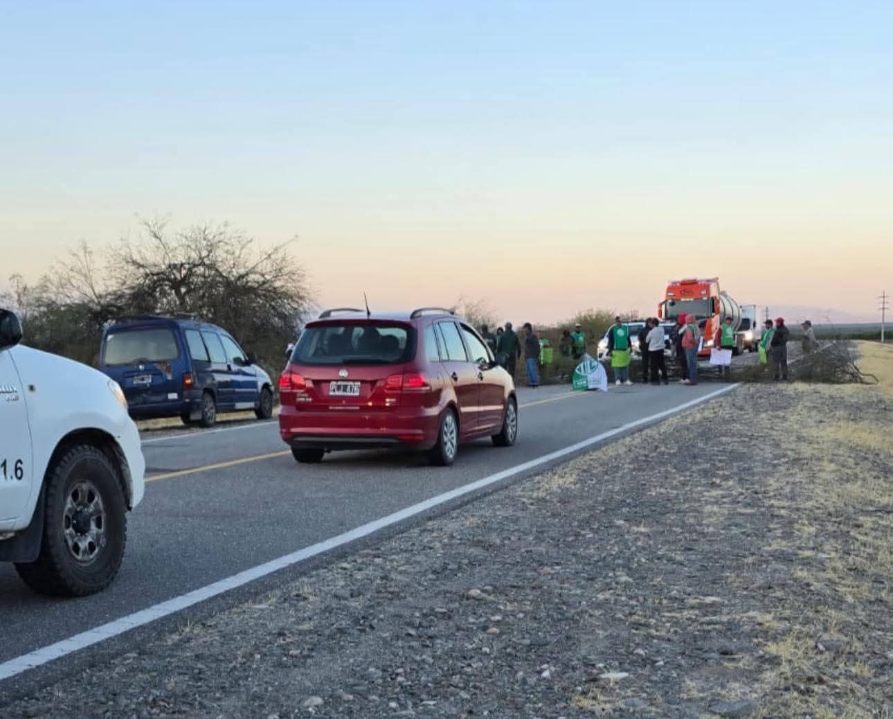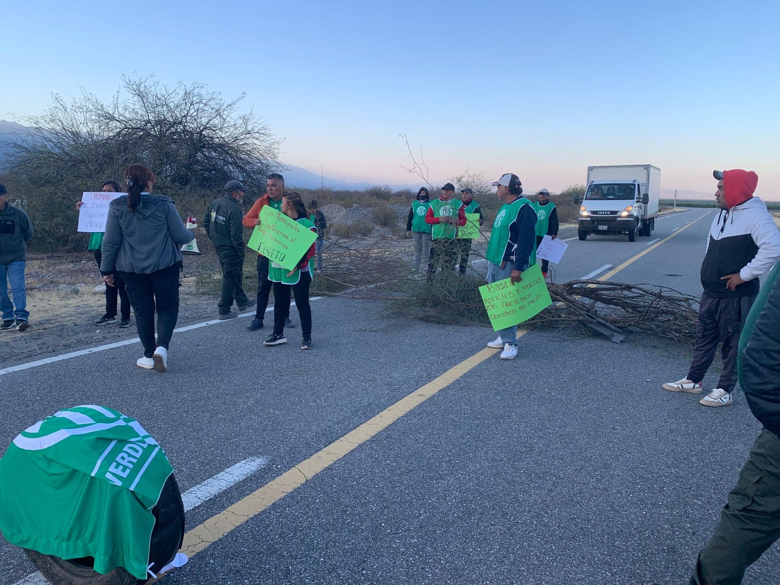 Trabajadores municipales de Pomán nucleados en ATE llevan a cabo un corte en ruta 46 , en reclamo de un incremento salarial.