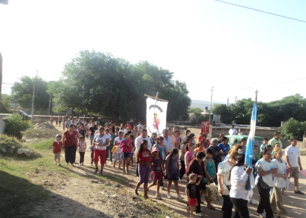 Como estaba previsto, parte de la comunidad salió desde el asentamiento Montecristo, acompañada por el Vicario Parroquial, Pbro. Eugenio Pachado, y otro grupo partió desde el barrio Virgen Niña, acompañado por el Cura Párroco, Pbro. Juan Néstor Olmos.