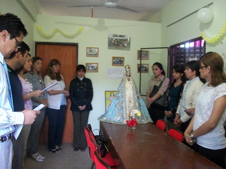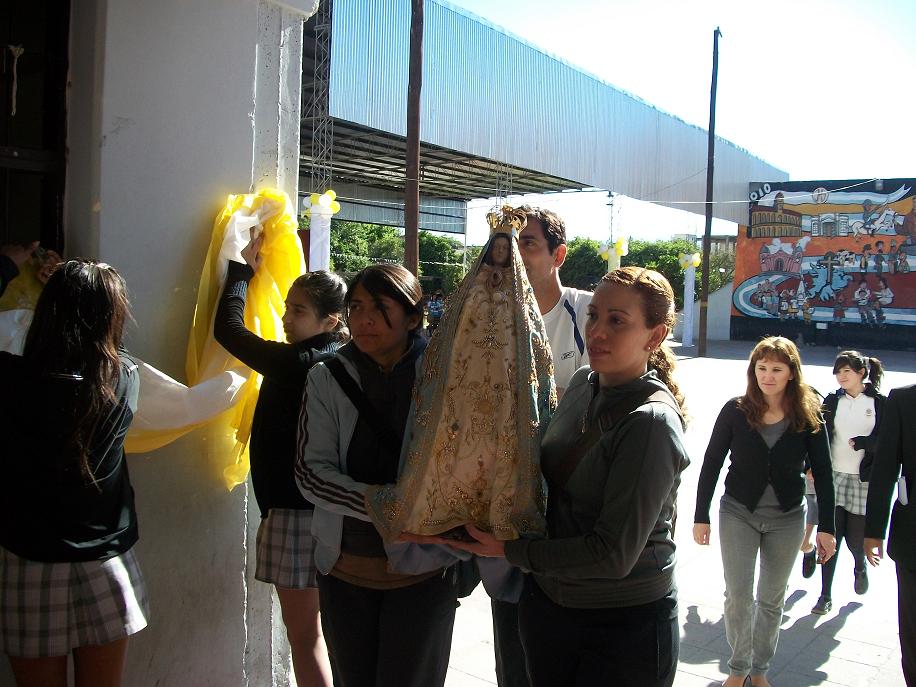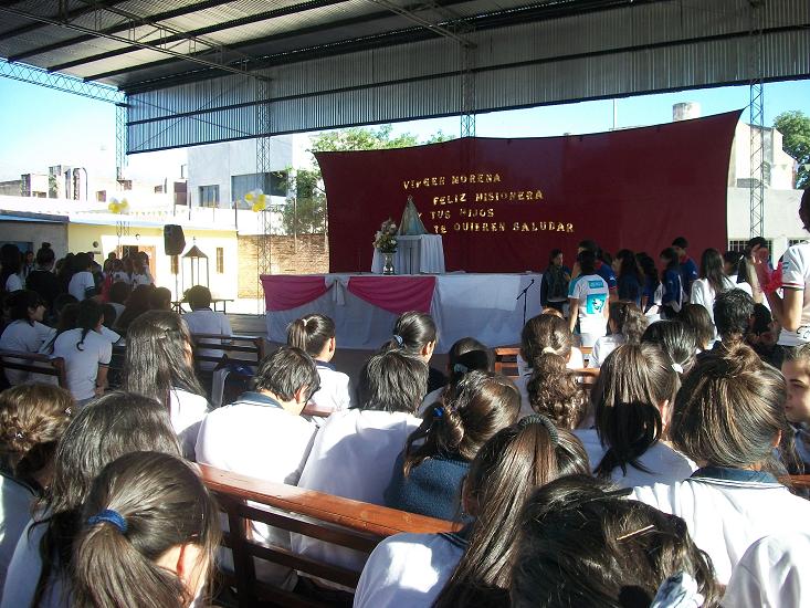 Todo el alumnado, sus preceptores y profesores vivieron un momento de animación en la cancha donde se ubicó el escenario donde fue colocada la Imagen de la Madre del Valle.