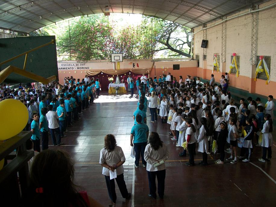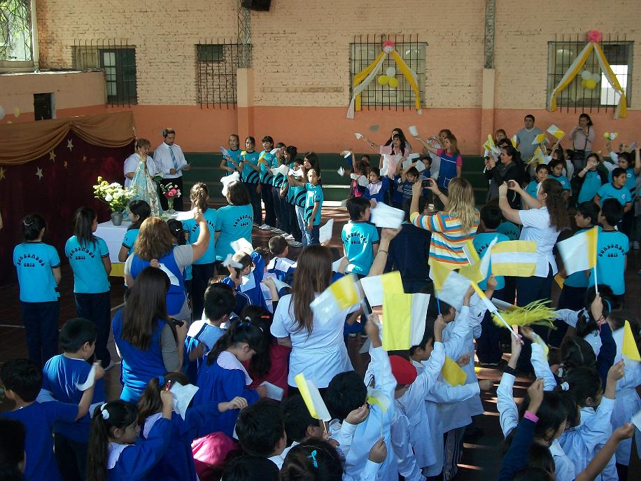 En la cancha central se ubicó un altar para ubicar con todas las distinciones y el cariño a la Imagen de la Madre del Valle, que llegó en brazos del Pbro. Eugenio Pachado, Capellán de la Catedral Basílica, para recibir las súplicas, peticiones, acciones de gracias, y todo lo que hay en los corazones de los presentes. Llegó para encontrarse con cada uno de los niños, docentes, directivos y padres que comparten sus actividades día a día. Y todas las voces se unieron para rezarle una Salve a la “Reina y Madre de misericordia”. Luego se sintió estallar los corazones al oír las voces de los niños que entonaron fervientemente el Himno a la Virgen del Valle, mientras la saludaban con pañuelos, flores y banderas.