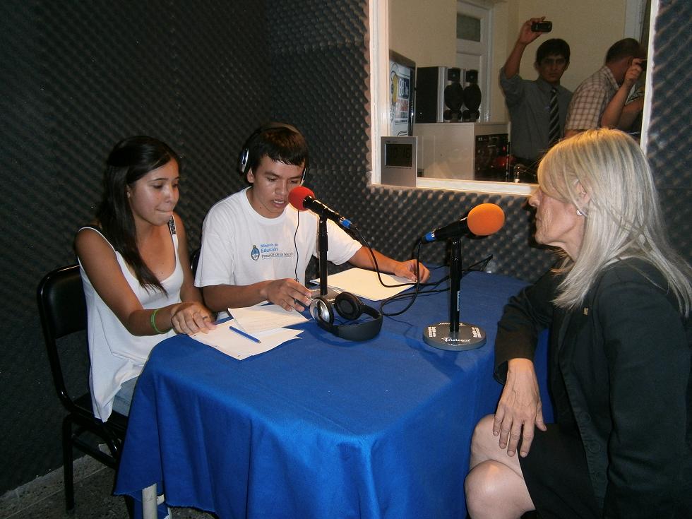 La flamante emisora FM Siján hizo sus primeros minutos al aire con una entrevista a la titular de la cartera educativa realizada por los jóvenes que asisten al taller de radio del CAJ que funciona en la sede escolar.